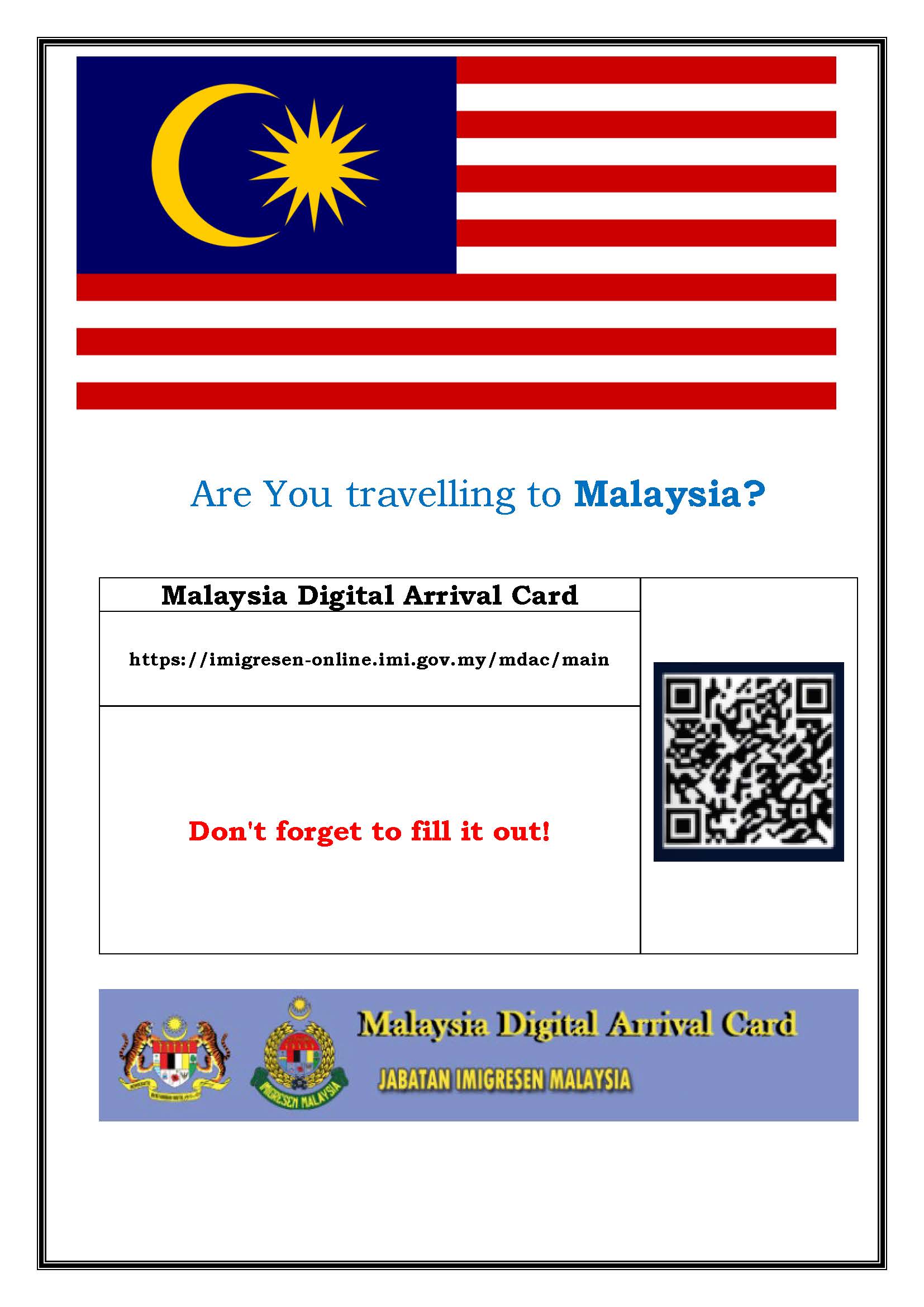 Malaysia has introduced the MDAC (Digital Arrival Card) system for all foreign nationals effective December 1 2023.
