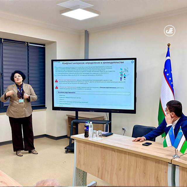 После вступительной части слово было предоставлено специалисту Службы по противодействию коррупции и комплаенс АО «Uzbekistan Airways» Н. Зикриллаевой, которая выступила с докладом о новых требованиях законодательства, практических аспектах декларирования конфликта интересов, мерах по снижению рисков неэтичного поведения и алгоритмах работы Комиссий по этике. В ходе семинара участникам были даны разъяснения по обязанностям сотрудников, примерам типичных конфликтных ситуаций, а также порядку их урегулирования.
