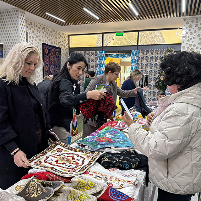 В здании прозвучали мелодии в исполнении женского ансамбля, сыгранные на дутаре, что придало ярмарке особый колорит и создало праздничное настроение.