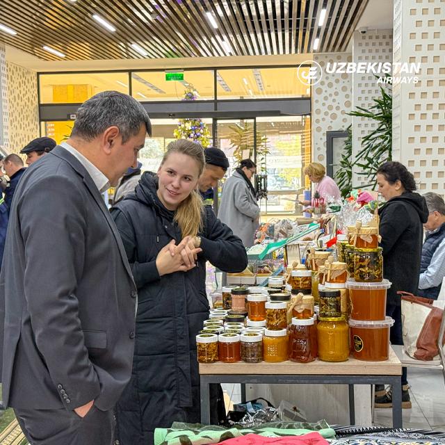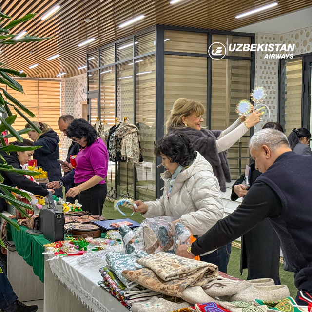 Yangi yil bayrami arafasida Uzbekistan Airways bosh ofisida milliy hunarmandchilik va xalq amaliy san’ati mahsulotlarining yarmarkasi bo‘lib o‘tdi.