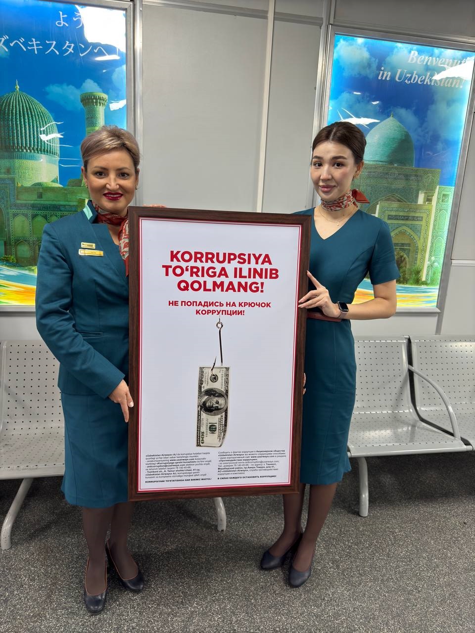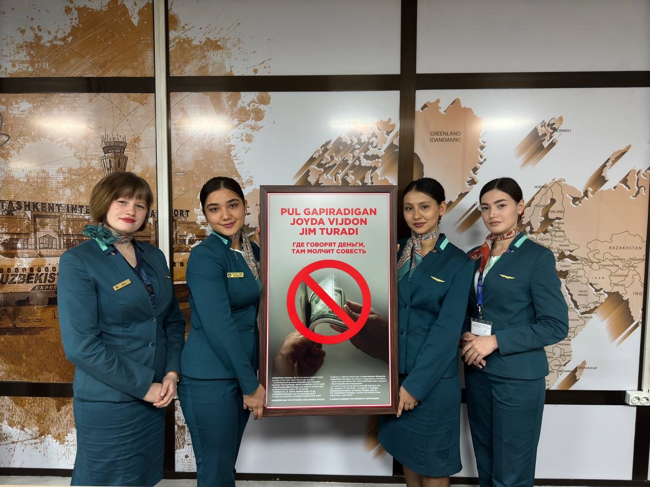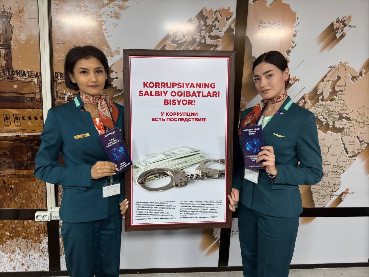 Xalqaro korrupsiyaga qarshi kurashish kuni arafasida "Korrupsiyaga qarshi kurashish oyligi" doirasida "Uzbekistan Airways" AJ bortkuzatuvchilari o‘rtasida “Biz halollik tarafdorimiz!”, "Biz korrupsiyaga qarshimiz" ijodiy chellenji o‘tkazildi. Tashabbusning maqsadi - korporativ halollik madaniyatini mustahkamlash, xodimlarning huquqiy ongini oshirish va korrupsiyaning oldini olish uchun har bir kishining shaxsiy mas’uliyatini shakllantirishdan iborat.
