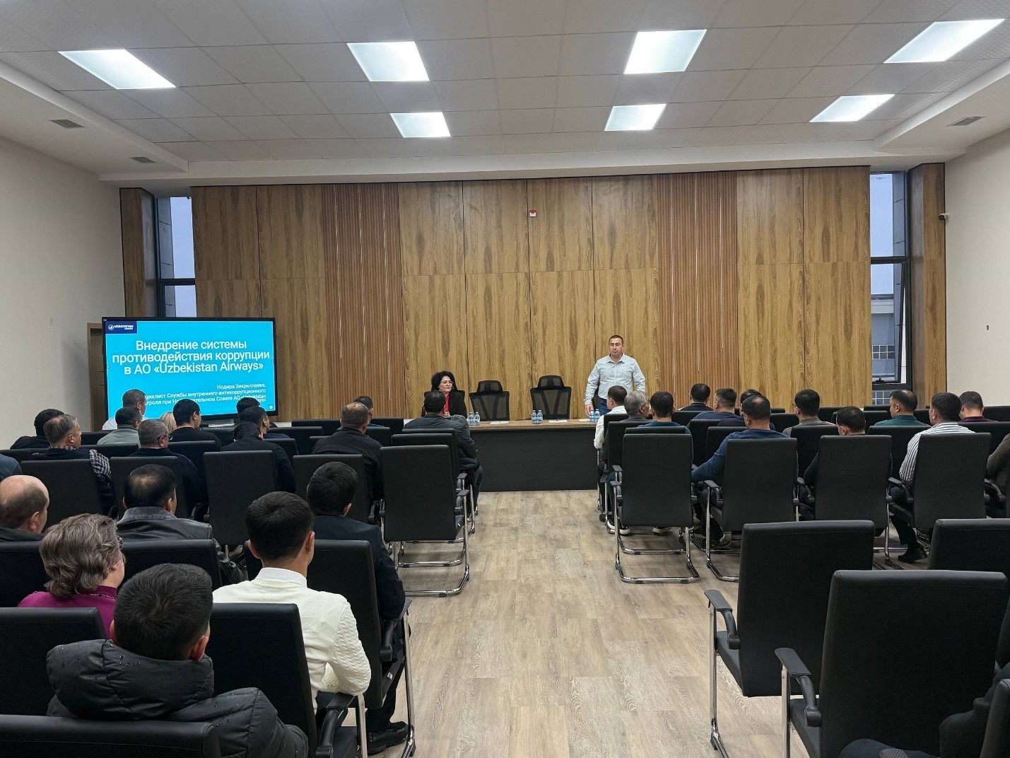 2025 yil 9 dekabr kuni “Uzbekistan Xumo Airport” MChJ majlislar zalida “Uzbekistan Airways” AJda korrupsiyaga qarshi kurash tizimini joriy etishning xalqaro tajribasi va milliy amaliyotiga bag‘ishlangan ilmiy-amaliy seminar bo‘lib o‘tdi.