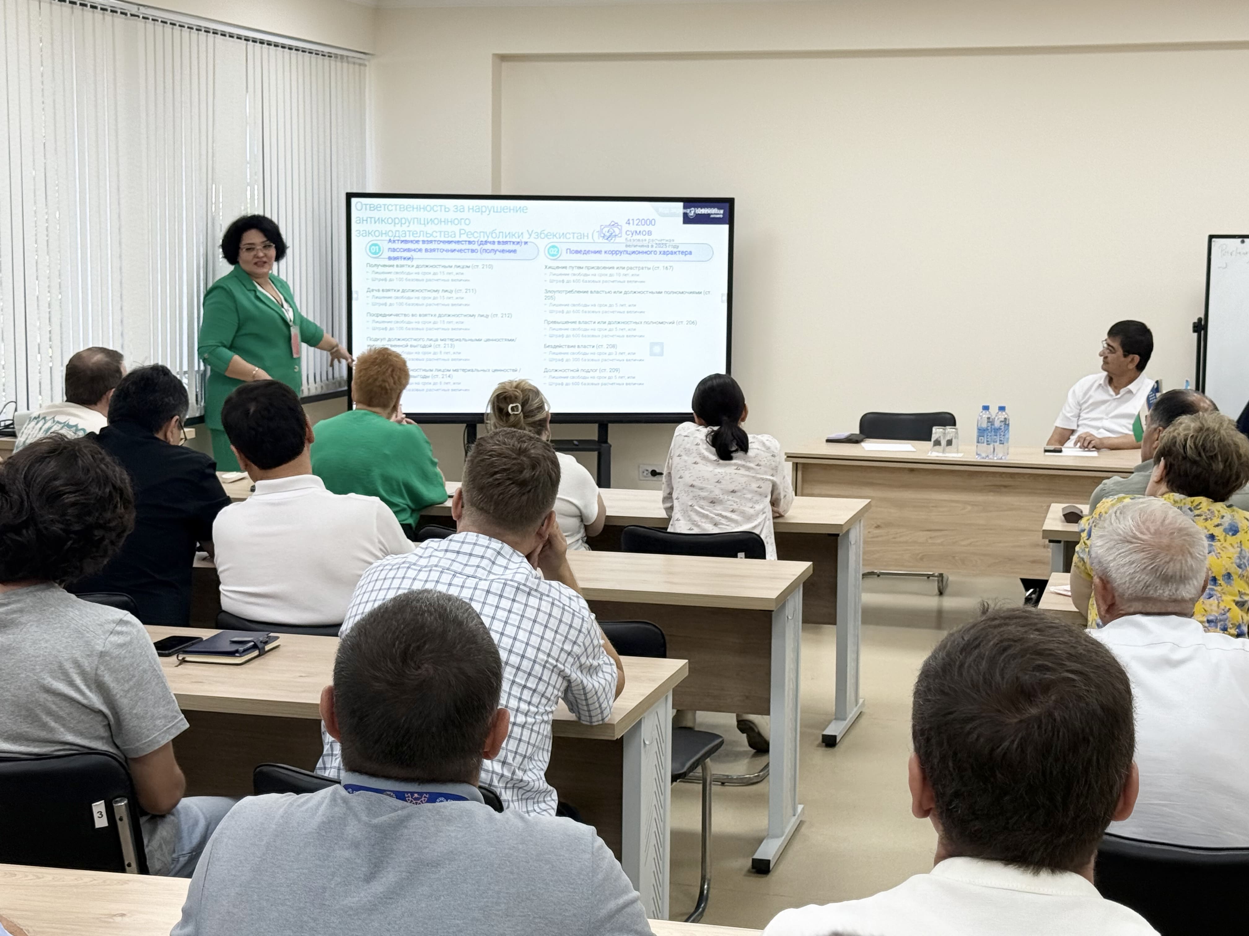 Tadbir "Uzbekistan Airways Technics" MChJ rahbarlari faoliyatida korruptsiyaga qarshi qonunchilikka rioya qilish va yuzaga kelishi mumkin boʼlgan korrupsiyaviy xavf-xatarlarning oldini olish muhimligi toʼgʼrisida xodimlarning xabardorlik darajasini oshirish maqsadida tashkil etildi. Ushbu tadbir korruptsiyaga qarshi korporativ madaniyatni mustahkamlash va xodimlarda xalqaro standartlar va milliy qonunchilik talablariga muvofiq "korruptsiyaga nisbatan murosasizlik"ni shakllantirish doirasida oʼtkazildi.